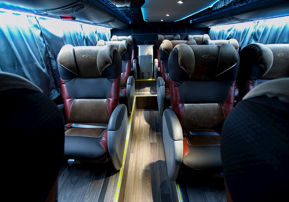 ÔNIBUS EXECUTIVO 1 PISO, preferencialmente as poltronas 2 e 4 na primeira fila.